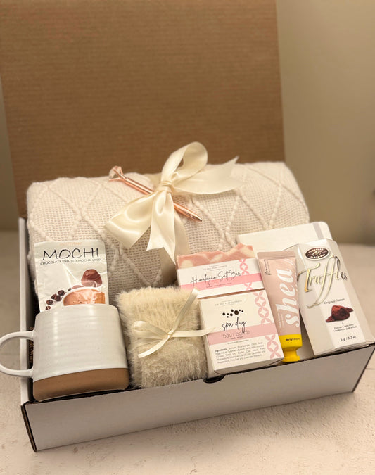 Cozy Hygge Gift Box With Blanket, Personalized Self Care Package For Her, House Warming Gift Set - Cream