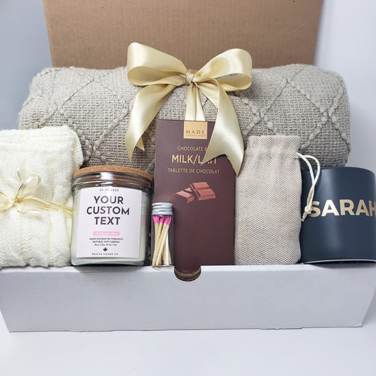 House Warming Gift Set, Personalized Self Care Package For Her, Cozy Hygge Gift Box With Blanket - Green